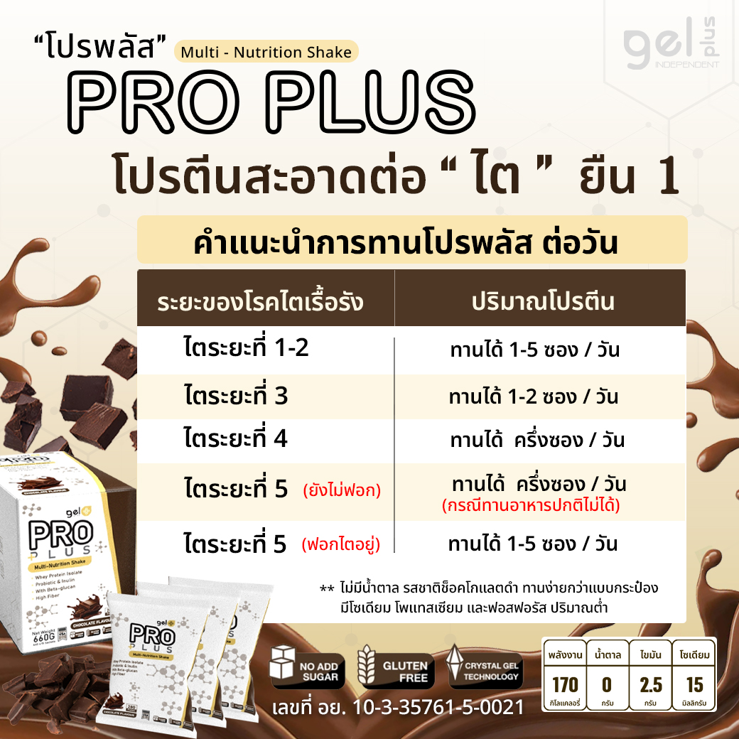 PRO PLUS จึงเหมาะกับผู้ที่ต้องการดูแลสุขภาพ ผู้ป่วยเบาหวาน ไตเสื่อม และผู้ป่วยที่รับคีโม